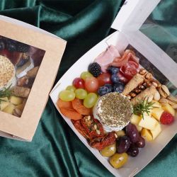 Gerne könnt ihr euch auch eine leckerer GourmetBox oder einen GourmetBecher vorbestellen. Diese sind Variationen eines Charcuterie Boards in Kleinformat, perfekt für 1-2 Personen. Sie eignen sich perfekt für die Mittagspause, für den gemütlichen Abend zuhause oder einfach als Snack für zwischendurch. Die GourmetBox hat die ideale Größe, um einmal von all unseren besten Empfehlungen zu kosten. Achtung! Diese Boxen stecken voller Liebe und Genuss und eignen sich auch perfekt als Geschenk.